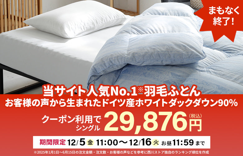 2枚合わせ羽毛布団日本製ハンガリー産ホワイトグース90% セール価格¥119,900