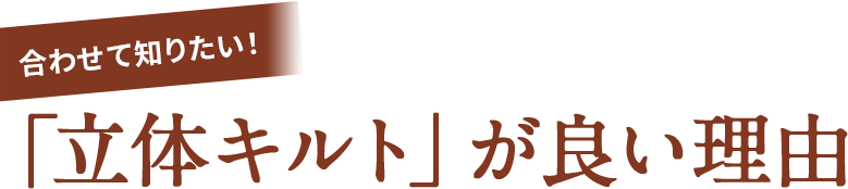 キルトとは、羽毛布団のマス目のこと。縦と横のマス目の数に合わせて、「4×5」や「5×6」と表 記しています。 マスが大きいほとカサを出すことはできますが、マスの中で羽毛が寄ってしまいやすくなります。羽毛が寄ってしまうと、ダウンがなくなった部分をあたためることができなくなってしまうので、マス目が多いものを選ぶと良いでしよう。